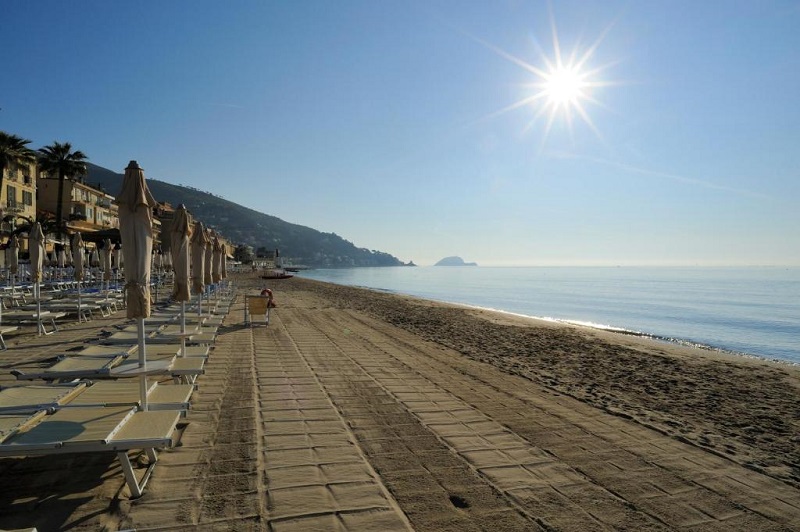 Wat Alassio uniek maakt, is het brede zandstrand – iets wat zeldzaam is in Ligurië, waar je vaak kiezelstranden vindt. Het strand loopt langzaam af in zee, wat het perfect maakt voor gezinnen met kinderen. Langs de kust vind je zowel privéstranden met ligbedden als vrije stranden.
