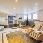– Wellnessruimte met onder andere sauna, stoombad, jacuzzi, voetbaden en massagedouches